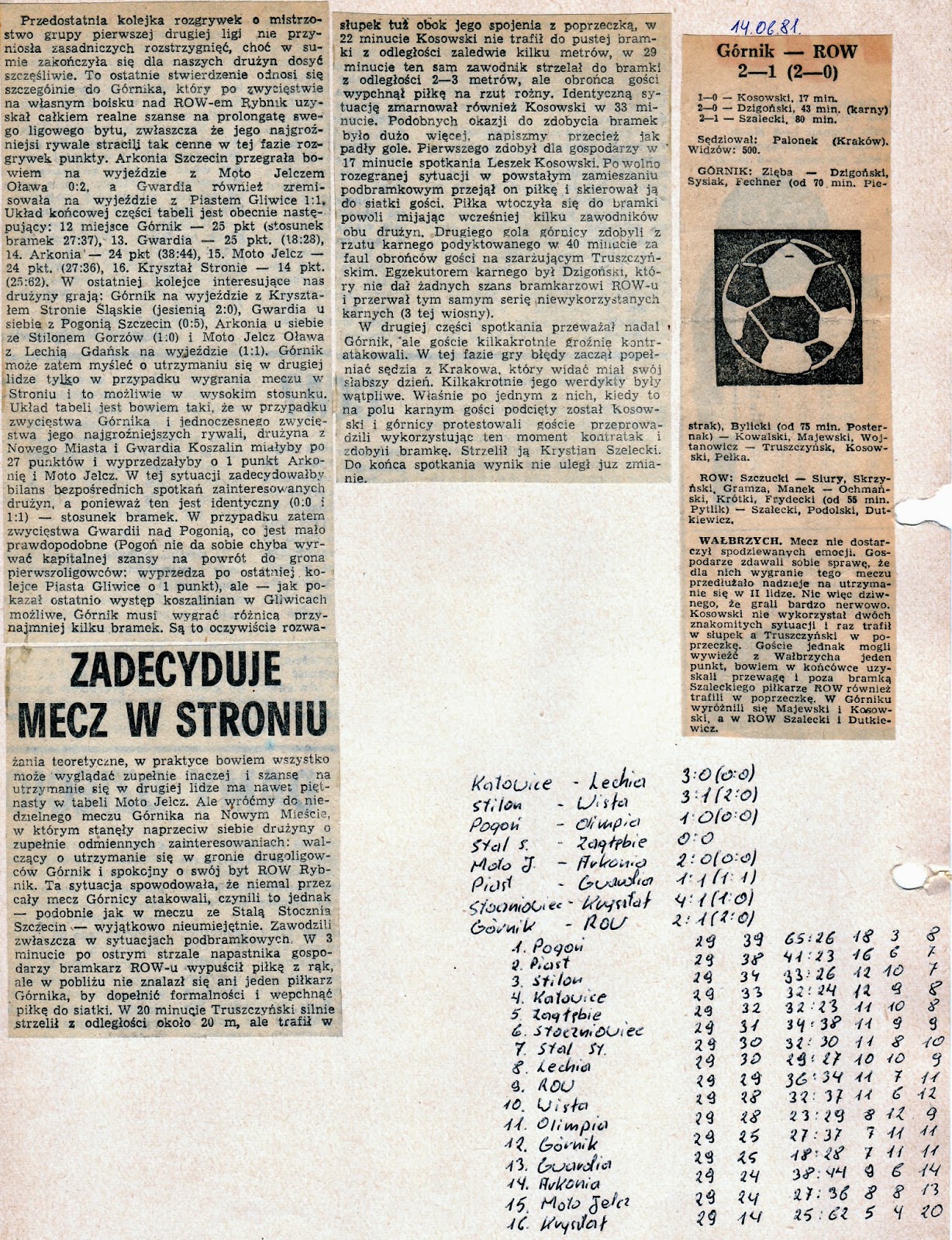 Furtok ( od 80 min.Sidło ), Rzeszutek, Górnik ( od 46 min.Biegun ), Trener: Władysław Żmuda,